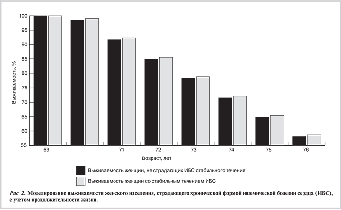 Среднее число «недопрожитых» лет пациентами со стабильным течением ишемической болезни сердца составило 0,34 года на одного пациента.