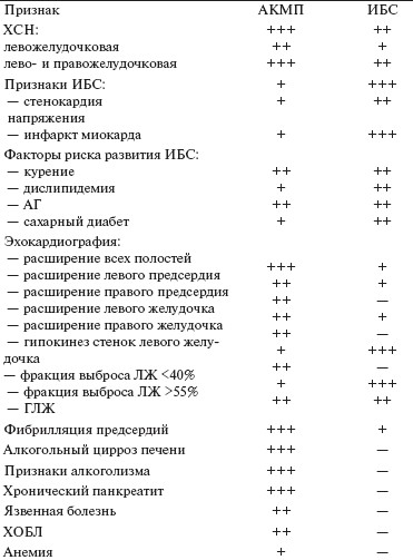 Дифференциальная диагностика алкогольной кардиомиопатии и ИБС представлена в табл. 1.