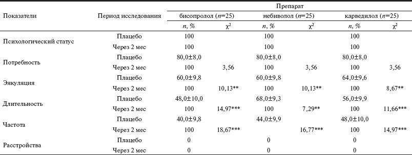 - После 2-месячной монотерапии бисопрололом, небивололом и карведилолом у мужчин с артериальной гипертонией отмечается улучшение исходно нарушенных показателей половой функции, а именно психической и эрекционной составляющей.